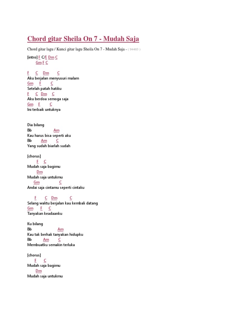 Lagu Sheila On 7 Mudah Saja Lirik Dan Chord