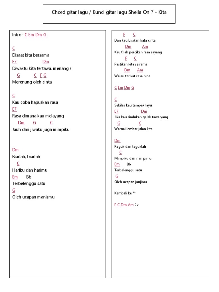 Chord Gitar Lagu Kunci Gitar Lagu Sheila On 7 Kita