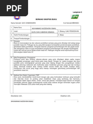 Sinopsis Sekolah Guru Dan Cabaran Semasa Doc Lampiran C Borang Sinopsis Buku Nama Sekolah Sk Sungsi Tua Baharu Kod Sekolah Bba7205 Khairuzzah Binti Course Hero