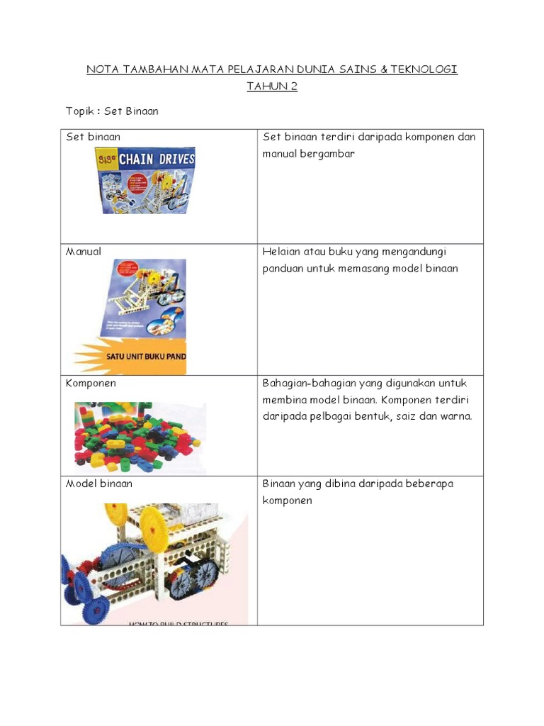 Lembaran Kerja Sains Tahun 2 Set Binaan