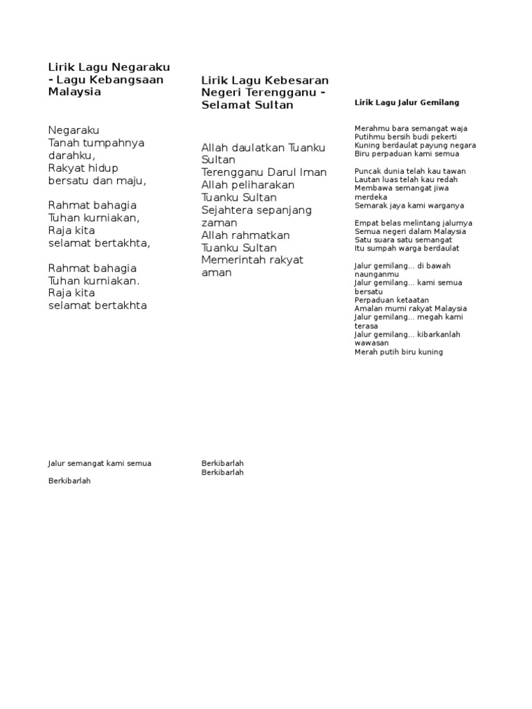 Lirik Lagu Selamat Sultan Terengganu Docx Document