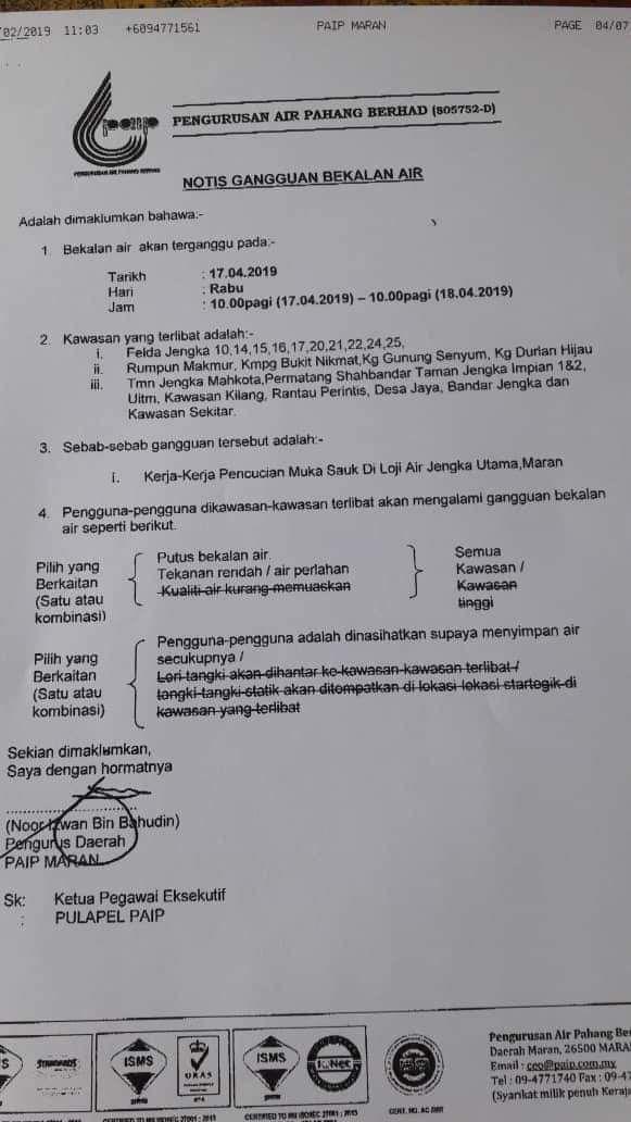 Notis Gangguan Bekalan Air Berjadual Daerah Besut Dan Setiu