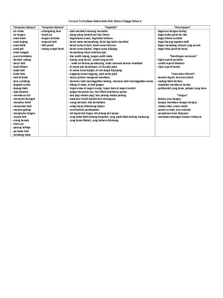 Senarai Peribahasa Dan Simpulan Bahasa Dalam Buku Teks Tahun 4